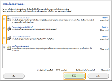 ล้างช่องทำเครื่องหมายทั้งหมด ยกเว้น [คู่มือใช้งานอิเล็กทรอนิกส์] และคลิก [ติดตั้ง]
