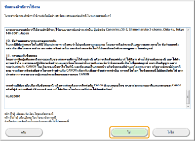 อ่านข้อตกลงการใช้งาน แล้วคลิก [ใช่] เพื่อยอมรับ
