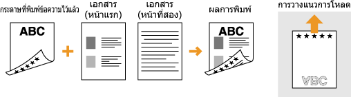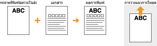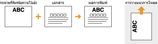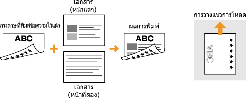ส่วนนี้จะอธิบายวิธีการโหลดกระดาษที่พิมพ์ไว้ก่อนแล้วตามแนวที่เหมาะสมและหงายด้านที่ถูกต้องขึ้น สำหรับคำอธิบายขั้นตอนทั้งหมดสำหรับการโหลดกระดาษในลิ้นชักหรือถาดอเนกประสงค์ โปรดดูหัวข้อต่อไปนี้