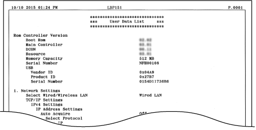 [รายการข้อมูลผู้ใช้] หรือ [รายการฟอนต์ PCL]