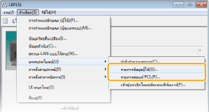 (กระดาษ) ของเครื่องในการพิมพ์รายการข้อมูลผู้ใช้ การตรวจดูการตั้งค่าเครือข่ายการตั้งค่าภาษาที่จะพิมพ์ในในหน้าต่างสถานะเครื่องพิมพ์ ตรงเมนู [ตัวเลือก]