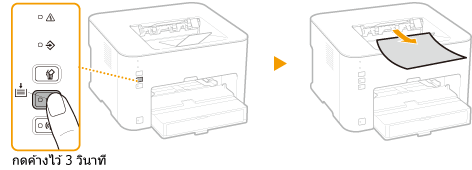 (กระดาษ) ของเครื่องค้างไว้ 3 วินาที เพื่อพิมพ์รายการการตั้งค่าของเครื่อง ซึ่งจะช่วยให้คุณสามารถตรวจสอบการตั้งค่า IPv4, MAC แอดเดรส และการตั้งค่า LAN แบบผ่านสาย/ไร้สายได้ รายการการตั้งค่าจะได้รับการจัดรูปแบบไว้สำหรับการพิมพ์ลงบนกระดาษขนาด A4 ก่อนสั่งพิมพ์ ให้โหลดกระดาษขนาด A4 ไว้ในลิ้นชัก การโหลดกระดาษในลิ้นชัก
