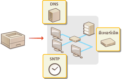 ขนาดและการกำหนดค่าของเครือข่ายจะแตกต่างกันโดยขึ้นอยู่กับวัตถุประสงค์ของเครือข่าย เครื่องนี้ออกแบบมาเพื่อให้ใช้งานเข้ากันได้กับการกำหนดค่าเครือข่ายหลากหลายแบบเท่าที่จะทำได้ และติดตั้งเทคโนโลยีเครือข่ายหลายอย่าง โปรดสอบถามผู้ดูแลเครือข่ายของคุณและตั้งการกำหนดค่าให้เหมาะกับสิ่งแวดล้อมของคุณ