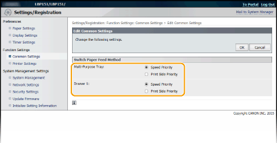 เลือก [Speed Priority] หรือ [Print Side Priority]