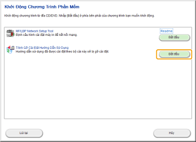 Bấm [Bắt đầu] cho [Trình Gỡ Cài Đặt Hướng Dẫn Sử Dụng].