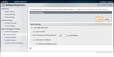Anda perlu membolehkan Google Cloud Print. Klik [Edit], pilih [Use Google Cloud Print] kotak semakan, dan kemudian klik [OK].