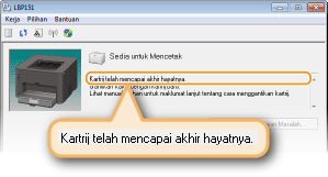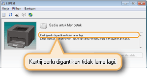 Anda boleh terus mencetak apabila mesej ini dipaparkan, tetapi kualiti cetakan mungkin merosot. Melakukan demikian juga mungkin mengakibatkan kerosakan pada mesin.