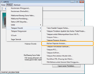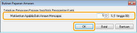 Anda boleh menetapkan jumlah baki di dalam kartrij toner (dalam %) untuk memaparkan mesej tersebut dalam kenaikan 1%. Mengikut lalai kilang, ia ditetapkan kepada 10 %.
