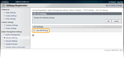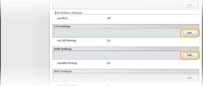 Klik [Edit] dalam [LPD Settings] atau [RAW Settings].