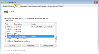 ![]() Anda boleh menambah port MFNP hanya apabila anda memasang pemacu pencetak daripada DVD-ROM yang dibekalkan, atau apabila anda memuat turun dan memasang pemacu pencetak dari laman web Canon.