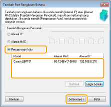 Pilih [Pengesanan Auto] dan pilih mesin apabila ia dikesan, dan kemudian klik [Seterusnya].