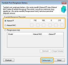 Ini adalah port yang membolehkan alamat IP mesin untuk dikesan secara automatik. Walaupun alamat IP mesin berubah, sambungan dikekalkan, sekiranya mesin dan komputer berada dalam subnet yang sama. Anda tidak perlu menambah port baru setiap kali alamat IP ditukar. Jika anda menggunakan mesin dalam persekitaran IPv4, anda sepatutnya secara biasa memilih jenis port ini.