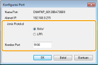 Di bawah [Jenis Protokol], pilih [RAW] atau [LPR], dan ubah [Nombor Port].