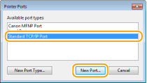 Pilih [Canon MFNP Port] dalam [Available port types] dan pilih [New Port].