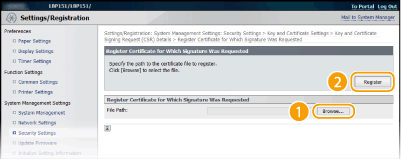 Klik [Browse], tentukan fail untuk permintaan tandatangan sijil dan klik [Register].