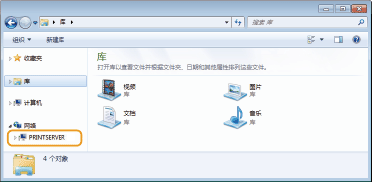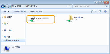 从 [网络] 或 [网上邻居] 选择打印服务器。