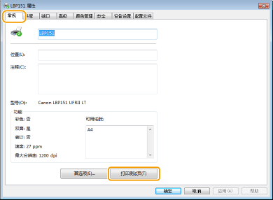 在 [常规] 选项卡中,单击 [打印测试页]。
