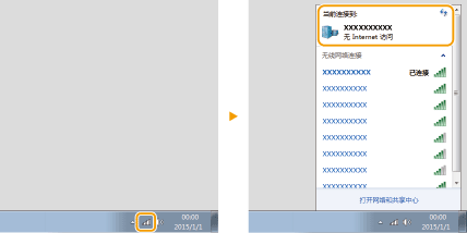 如果计算机连接无线局域网网络,单击系统托盘中的