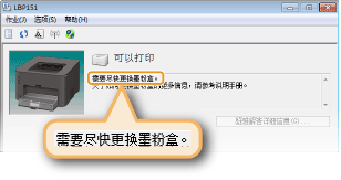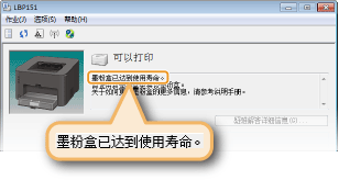 可以在“打印机状态窗口”中检查墨粉盒中剩余墨粉量。将要打印大作业时,尤其建议事先检查剩余墨粉量并确定是否应准备好用于更换的墨粉盒。
