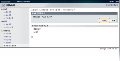 如果执行此初始化操作,将无法建立需要密钥对的 TLS 加密通信。如要使用 TLS 加密通信,请设置其他密钥对并重新启用该功能。 |