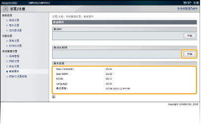 根据安装本机的方式选择更新固件的方法。检查本机的固件版本并在本机上通过互联网将其更新,或通过已下载固件的计算机更新。