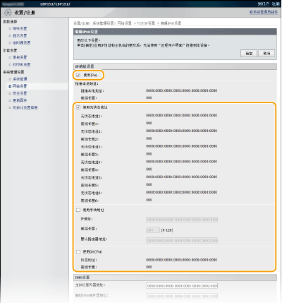 选择 [使用IPv6] 复选框,并配置所需设置。
