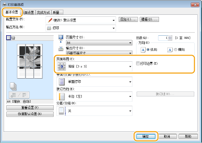 | | 可以将文档中的一页打印在多页上。例如,如果将一页 A4 尺寸的文档放大九倍,打印该文档并拼贴在一起后,可以得到一幅由 3x3 个 A4 尺寸打印件组成的海报。 |