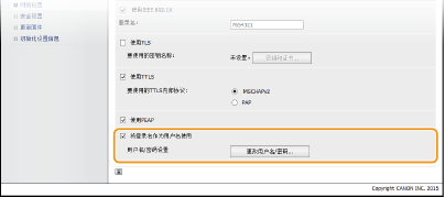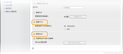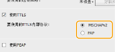 1 | 勾选 [使用TTLS] 或 [使用PEAP] 复选框。 TTLS 的内部协议 可选择 MSCHAPv2 或 PAP。如果想要使用 PAP,请单击 [PAP] 单选按钮。 |