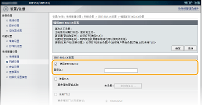 勾选 [使用IEEE 802.1X] 复选框,在 [登录名] 文本框中输入登录名称,然后指定所需设置。