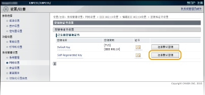 2 | 单击想要用于客户端认证的密钥对右侧的 [注册默认密钥]。 查看密钥对或证书的详细信息 |