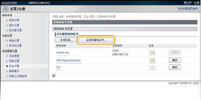 单击 [密钥和证书设置] 或 [CA证书设置]。