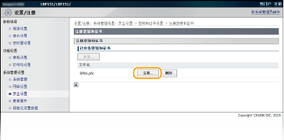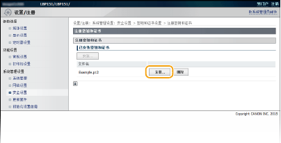 如果密钥对当前用于某种用途,如当 [密钥使用] 下显示 [TLS] 或 [IEEE 802.1X] 时,无法删除该密钥对。在此情况下,请禁用此功能或更换密钥对,再进行删除。无法删除预装的 CA 证书。