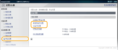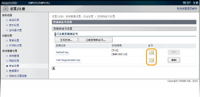 单击 [密钥和证书设置] 或 [CA证书设置]。