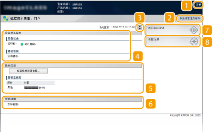 显示墨粉盒中剩余墨粉量。单击 [检查耗材详细信息] 显示检查耗材的画面。