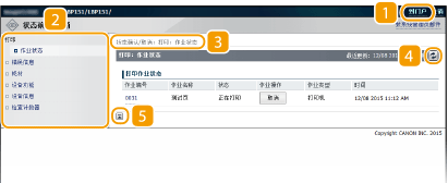 显示 [状态确认/取消] 页面。您可以通过此页面查看当前打印状态、取消打印并查看打印作业历史记录。
