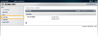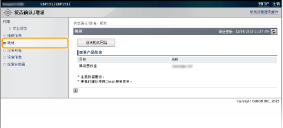 显示墨盒型号和其他信息。也可在门户页(主页)单击 [检查耗材详细信息] 显示检查耗材的画面。