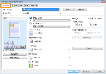 印刷設定画面の表示方法については、「印刷する」または「あらかじめ印刷の設定をする」を参照してください。 |