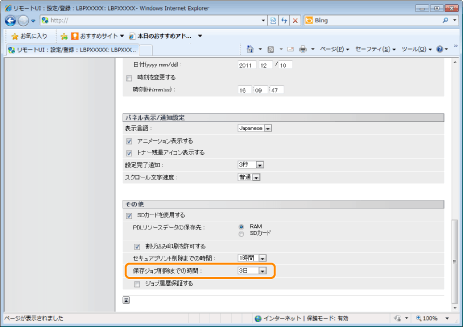 保存ジョブを、保存してから削除するまでの時間を設定して、自動的に削除することができます。