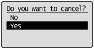 About print jobs which cannot be canceledWhen canceling a job, you may not be able to cancel the job even if <Canceling jobs> is displayed. Also, you cannot cancel the following jobs. Jobs saved to boxes Delete such jobs using the Remote UI. |