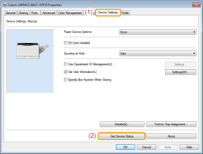 When paper feeder information cannot be obtained automaticallySelect the paper source option installed on your printer in [Paper Source Options]. |