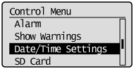![]() | To set the date, select [Date] and then press [OK]. After changing the setting, press [OK]. |