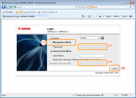 (3) | If [Remote UI Access PIN] is displayed, enter the PIN. |