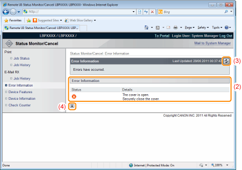 (3) | Update ButtonIt refreshes the [Error Information] page display to the latest status. |