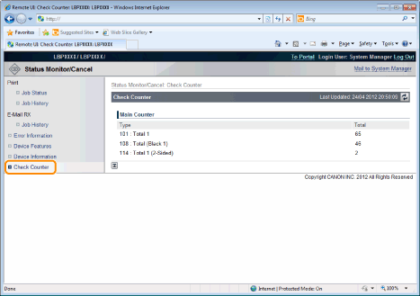 Select [Check Counter] from the [Status Monitor/Cancel] menu.