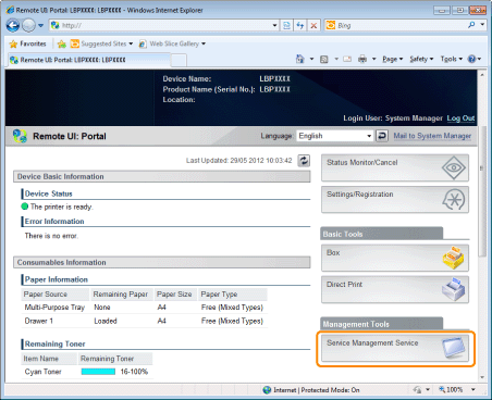 Click [Service Management Service] on the portal page.