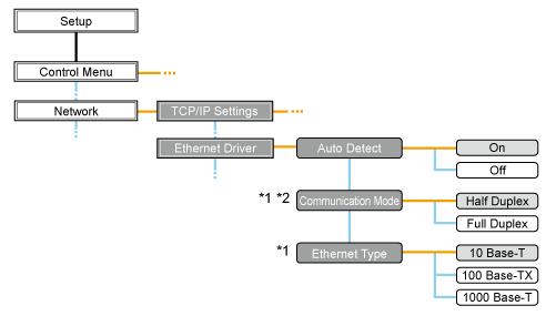 *1 | [Communication Mode] and [Ethernet Type] are displayed when [Auto Detect] is set to [Off]. |