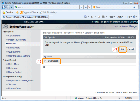 Specify the setting for the spooler function.