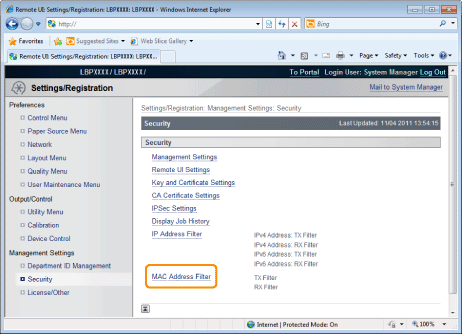 You can restrict the users who can access with MAC addresses using a Web browser (Remote UI).