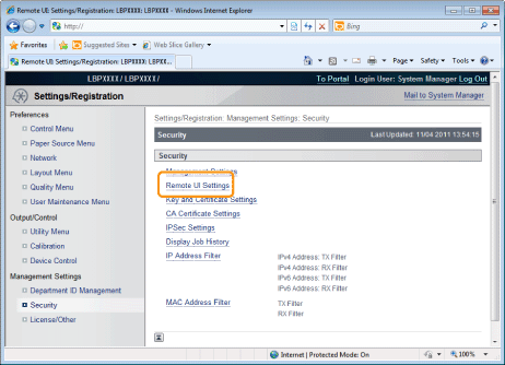 Click [Remote UI Settings].