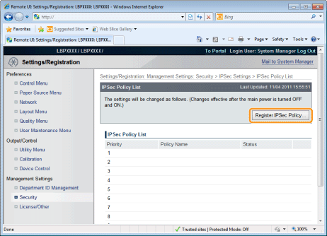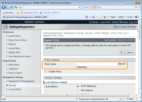 Number of security policies that can be registeredYou can register up to 10. If you cannot register one, delete unnecessary security policies. |